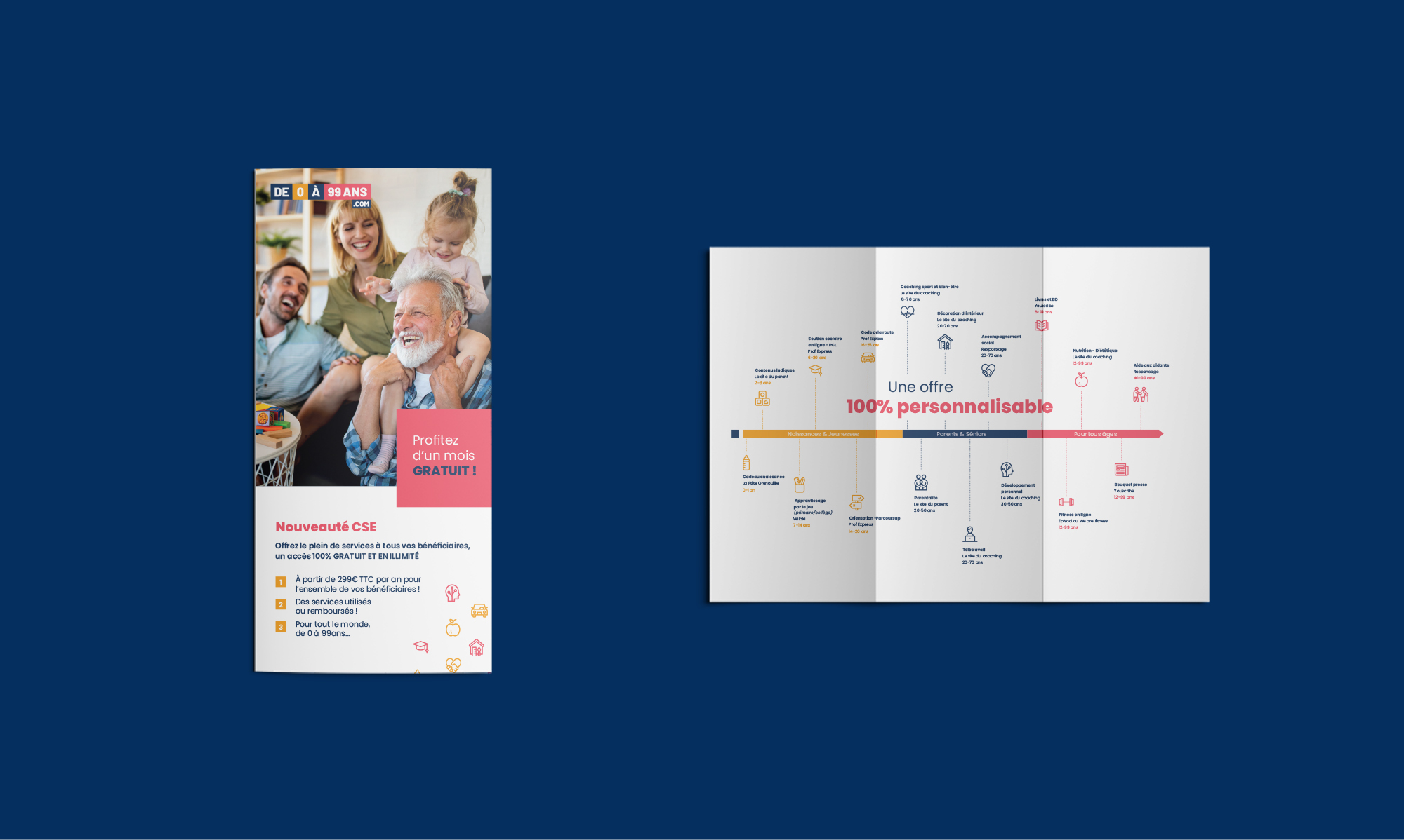 De 0 à 99 ans est une plateforme web proposant de nombreux services et une multitude de contenus aux salariés. Le client a fait appel à Glanum pour réaliser l’identité visuelle et le site web. 100% digital et 100% humain, le challenge est bien relevé par l’interface unique grâce à une organisation performante et sur mesure.